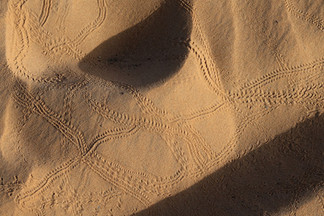 So kam ich wiederum auf einen wirklich schönen Platz und konnte ein paar Tage lang in den unterschiedlichsten Lichtverhältnissen wandern und fotografieren. Die höchsten Dünen hier sollen übrigens an die 150m hoch sein, aber ich habe vor lauer Ergriffenheit völlig verdaddelt, auf meinen Höhenmesser zu schauen. Der Sand war es schließlich auch, der mich nach drei Tagen von dort wieder vertrieb. Warum knirscht es zwischen den Zähnen, wenn man den Mund einen Moment zu lang offen lässt? Sandsturm in der Sahara. Okay, Sandsturm ist in diesem Fall sicher etwas zu weit gesprungen, trotzdem wurde es recht penetrant und ich werde dann mal in einer größeren Aktion alle Flächen und Ritzen im MANgo von Sand und Staub befreien müssen.